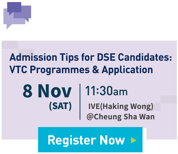 VTC Education Advisor to introduce VTC programme features, multiple progression pathways and application procedures of your interested programmes.