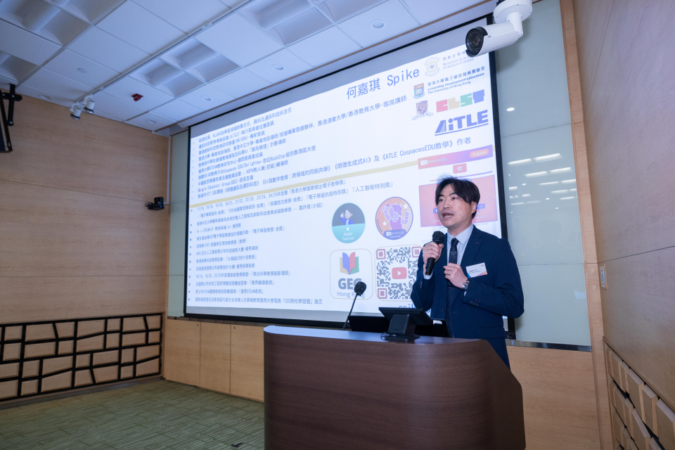 三位來自創意、科技及教育界的講者,分享了在生成式人工智能普及下,如何維持知識產權創作的獨特價值,並探討企業如何運用數據驅動的智能流程再造以提升營運效率,以及將人工智能工具融入 STEAM 與創意教育,培養學生的創造力與數碼素養。