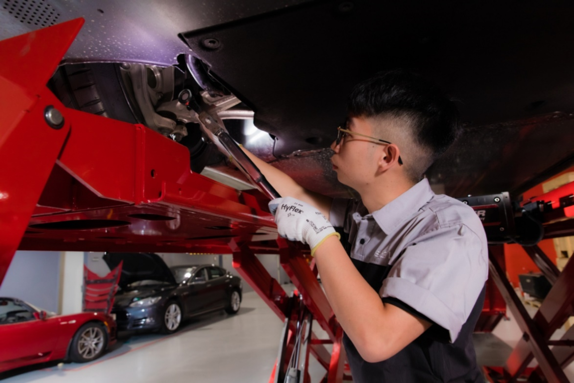 Jason续分享,电动车恍如一个移动的电路装置,从车辆的动力到运作零件都是高科技配置,包括探测车身周围障碍物的感应器、镜头、雷达探测,以及车内的触控屏等。问及Jason认为维修电动车与汽油车的分别,Jason说﹕「电动车的基本检查几乎是全电脑化,例如汽车软件未能自行更新时,便要利用维修中心的电脑系统找出问题所在。」他举例指,电动车的触控屏会显示不同的汽车资讯,包括全港充电站的位置等;当软件更新后,系统会加入充电站实时空位数目等,方便车主找寻距离最近的充电站,假如系统未能紧贴更新,便会影响驾驶者的体验。因此他每次为电动车例行检查时,不但要确保汽车硬件的性能安全,亦要详细检查电脑系统是否运作正常。